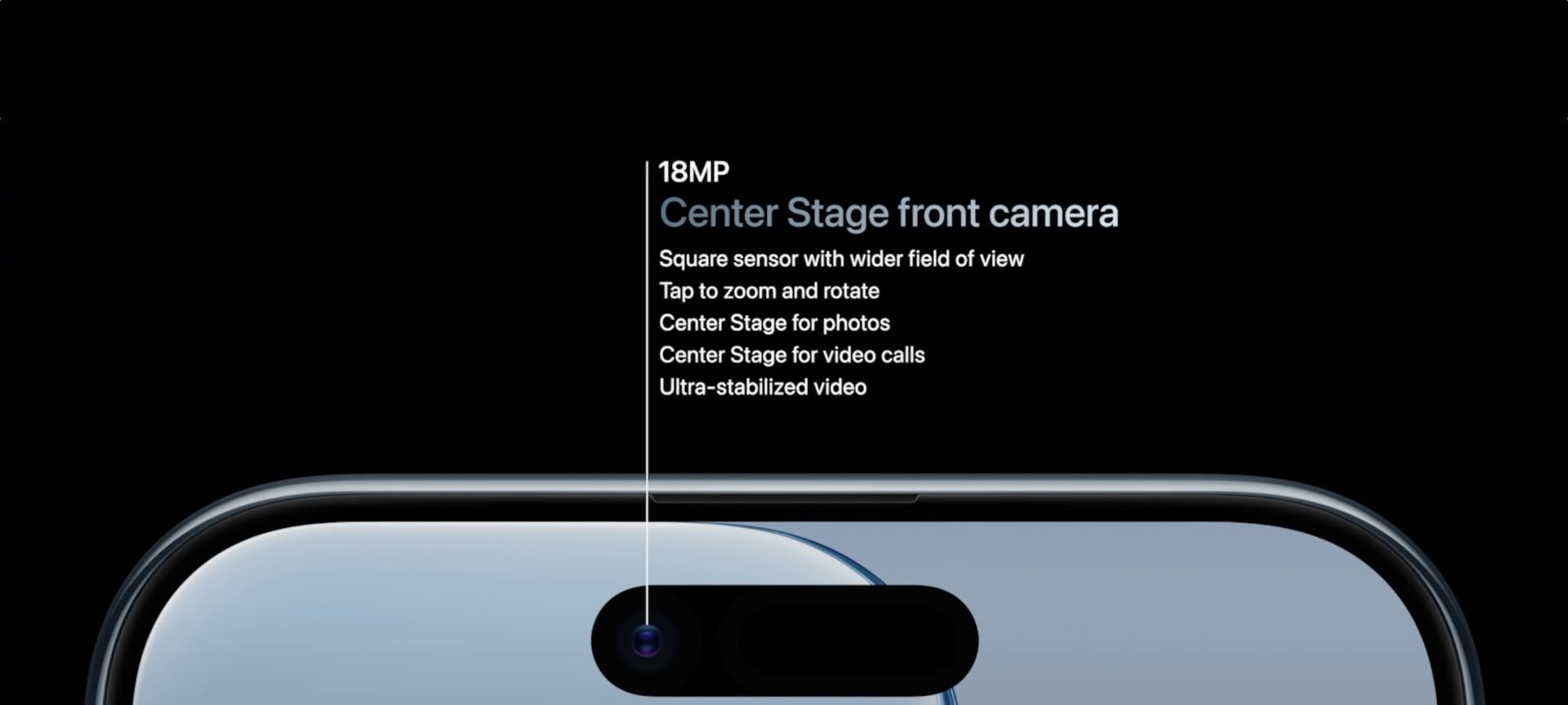 CÂMARA FRONTAL 18MP CENTER STAGE — Enquadramento flexível. Selfies de grupo mais inteligentes. Captura dupla de vídeo para gravação simultânea nas câmaras frontal e traseira. E não só.
