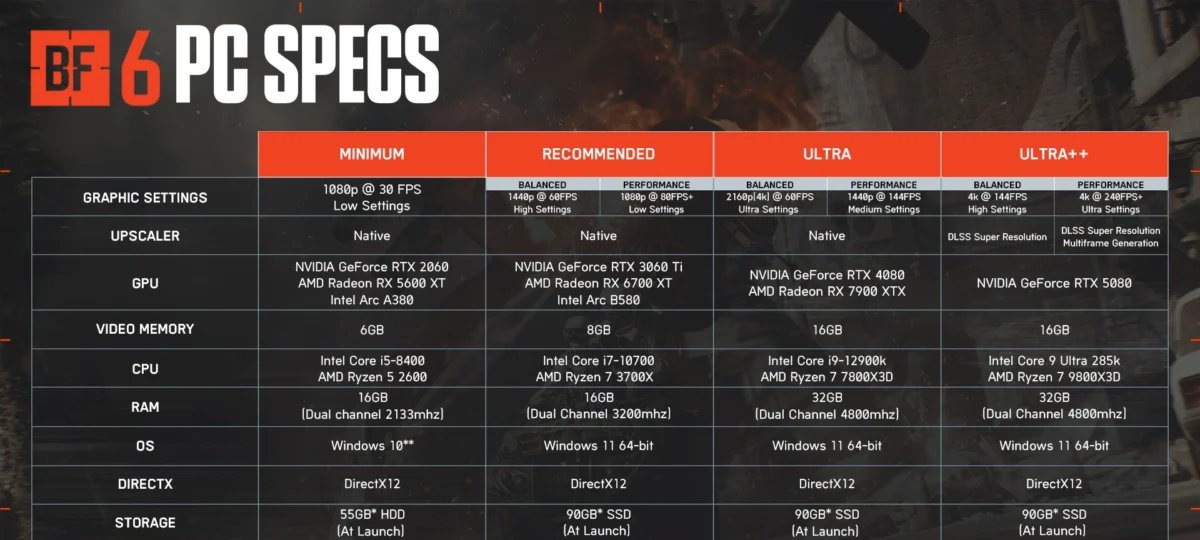 Battlefield 6 divulga requisitos de PC do mínimo ao “ultra++” antes do lançamento - Imagem do artigo original