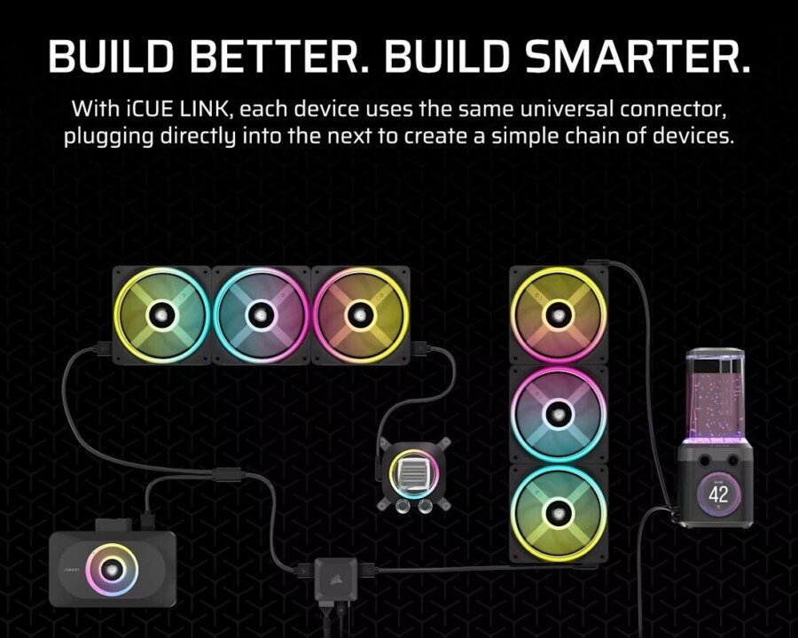 O bloco se conecta ao sistema iCUE LINK para alimentação, iluminação RGB e monitoramento. Um hub iCUE é obrigatório, e o produto já sai de fábrica com pasta térmica e pads de memória aplicados. O XG3 RGB Hybrid foi projetado para operar com o fluido Corsair XL e pode ter temperaturas e efeitos de luz gerenciados pelo software iCUE.