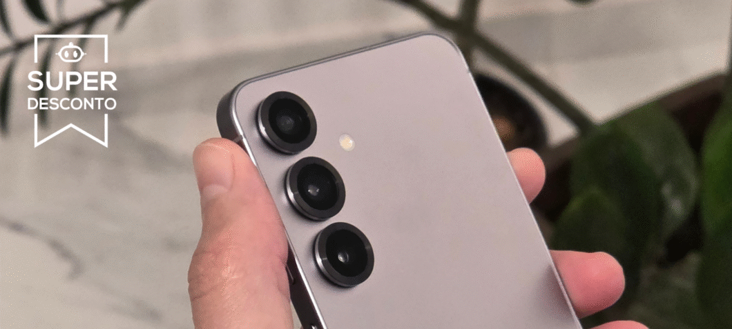 A traseira abriga três sensores: principal de 50 MP, teleobjetiva de 10 MP com zoom óptico de 3× e ultrawide de 12 MP. O conjunto grava em 8K e suporta HDR10+, entregando fotos e vídeos em alta definição.