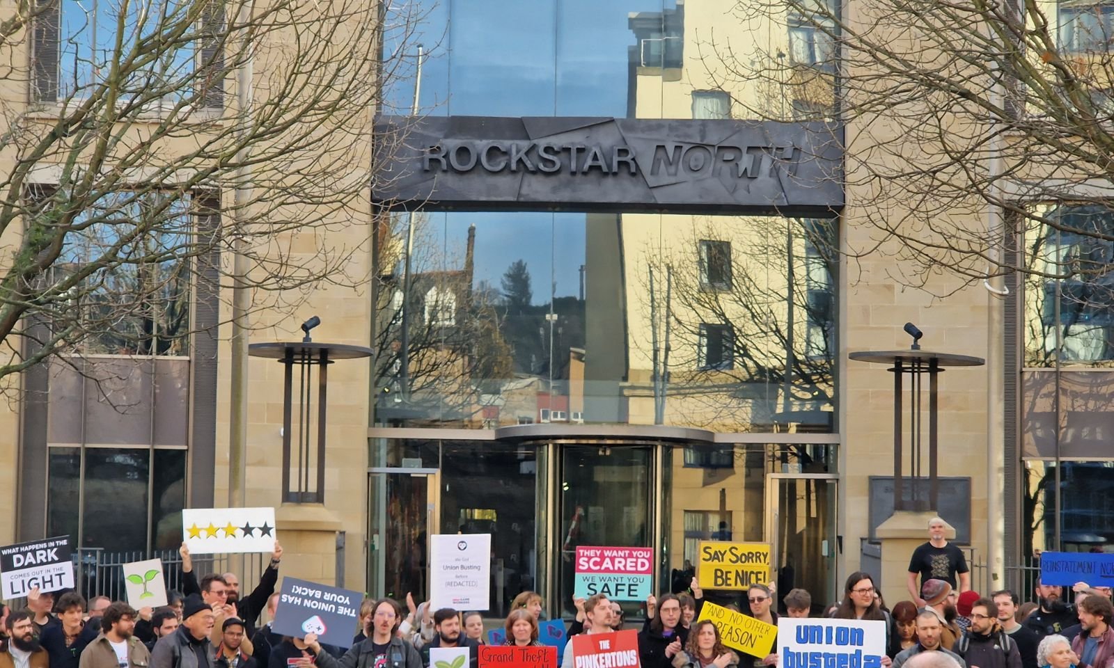 Em Edimburgo, o protesto ocorreu diante da Rockstar North, enquanto na capital britânica manifestantes bloquearam a entrada do escritório da Take-Two. Cartazes com frases como “Grand Theft Employment”, “The Pinkertons salute you!” e “We got union busting before [redacted]” foram erguidos pelos participantes.